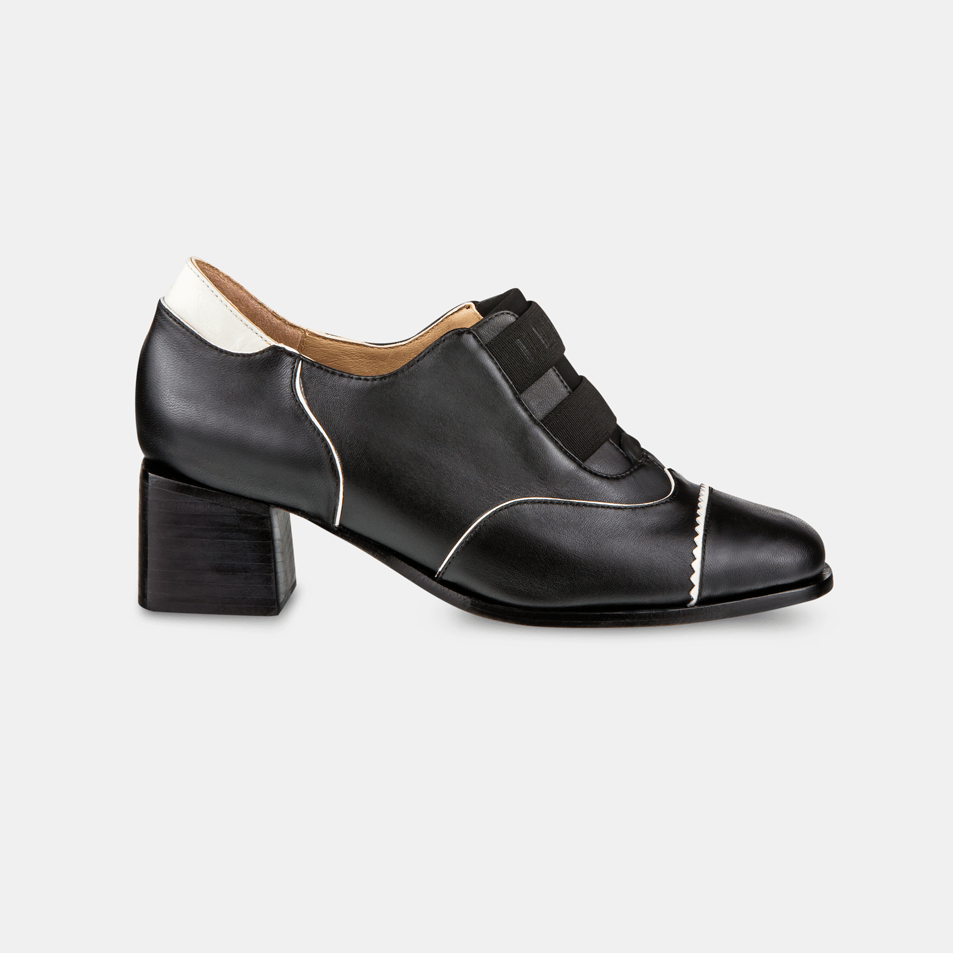 Nosso Oxford Couro B&W combina a Sofisticação com o estilo Clássico. Seu salto bloco garante conforto absoluto! Na combinação Preto com detalhes em Off-White é a escolha coringa!